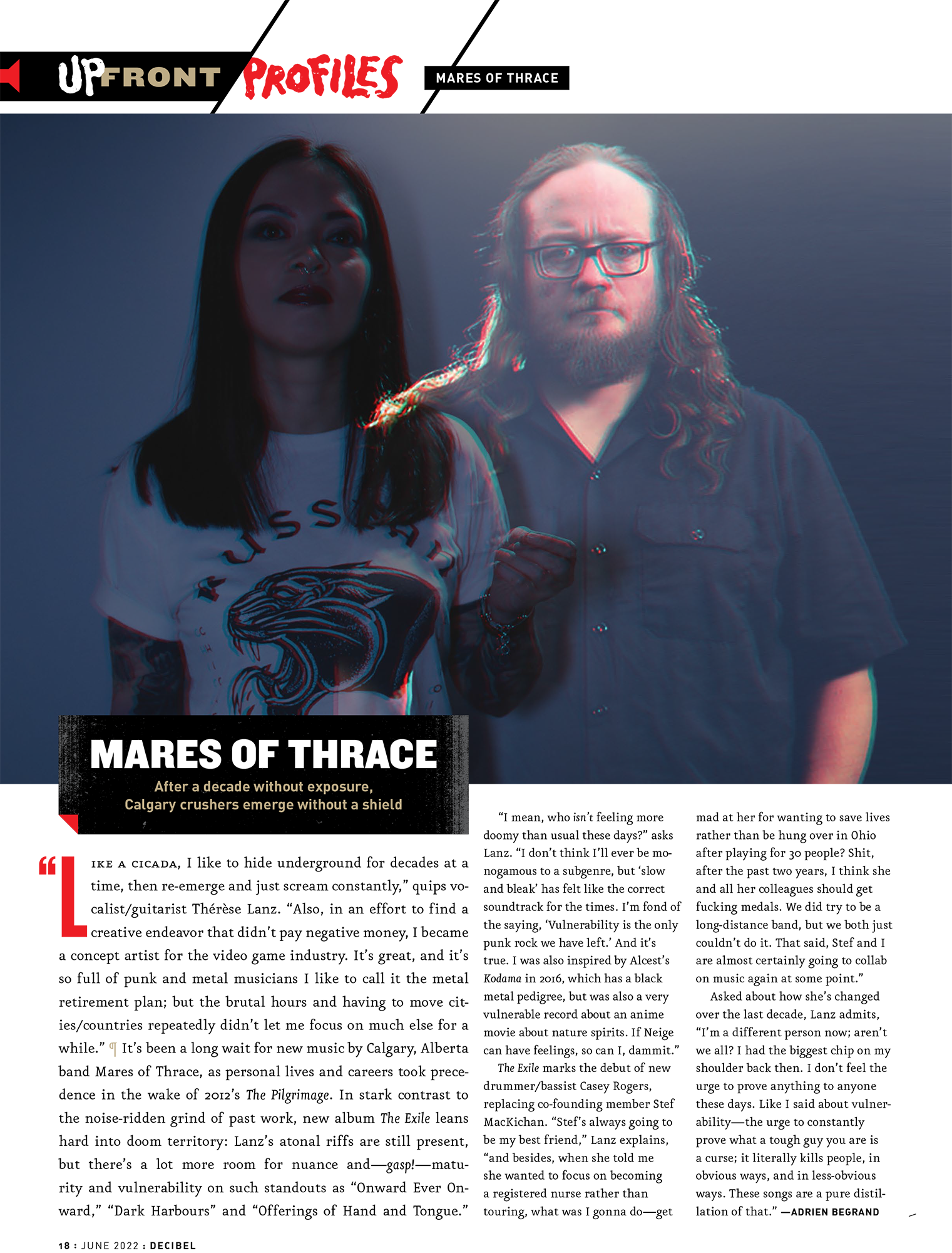 - Mares has released two records (2012’s The Pilgrimage and 2022’s The Exile) on Canada’s Sonic Unyon Records (home of Cursed, Intronaut, Voivod, and Danko Jones)